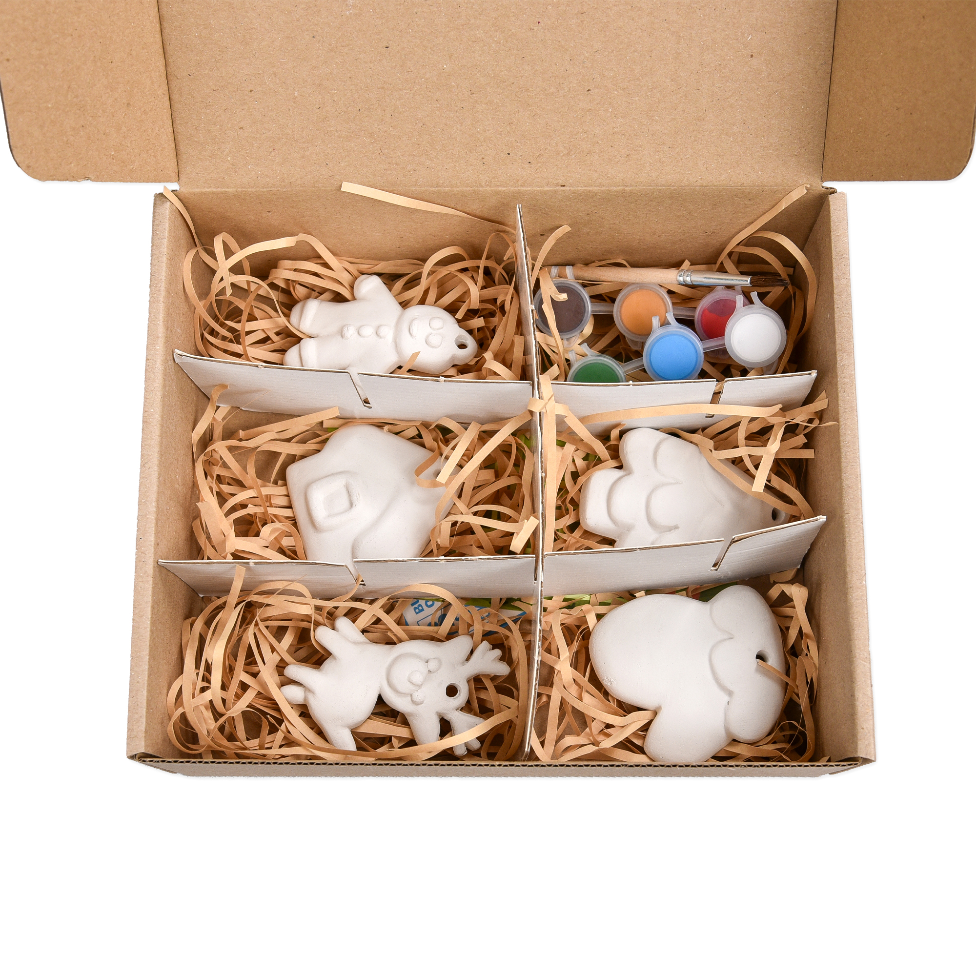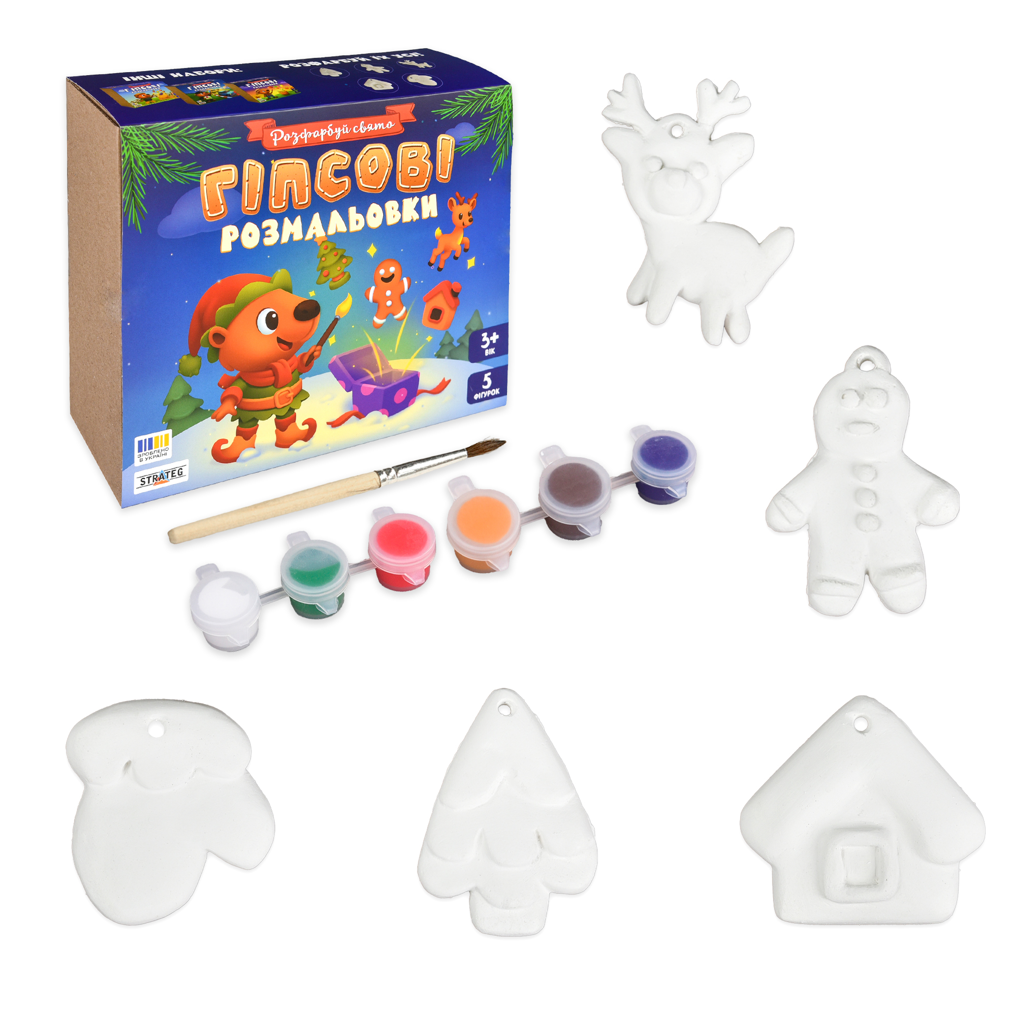 Создайте настоящее зимнее чудо своими руками! Этот набор позволит вашему ребенку погрузиться в волшебную атмосферу праздников. В комплекте вы найдете 5 гипсовых фигурок в виде любимых новогодних символов: елки, оленя, пряничного человечка, домика и перчатки.