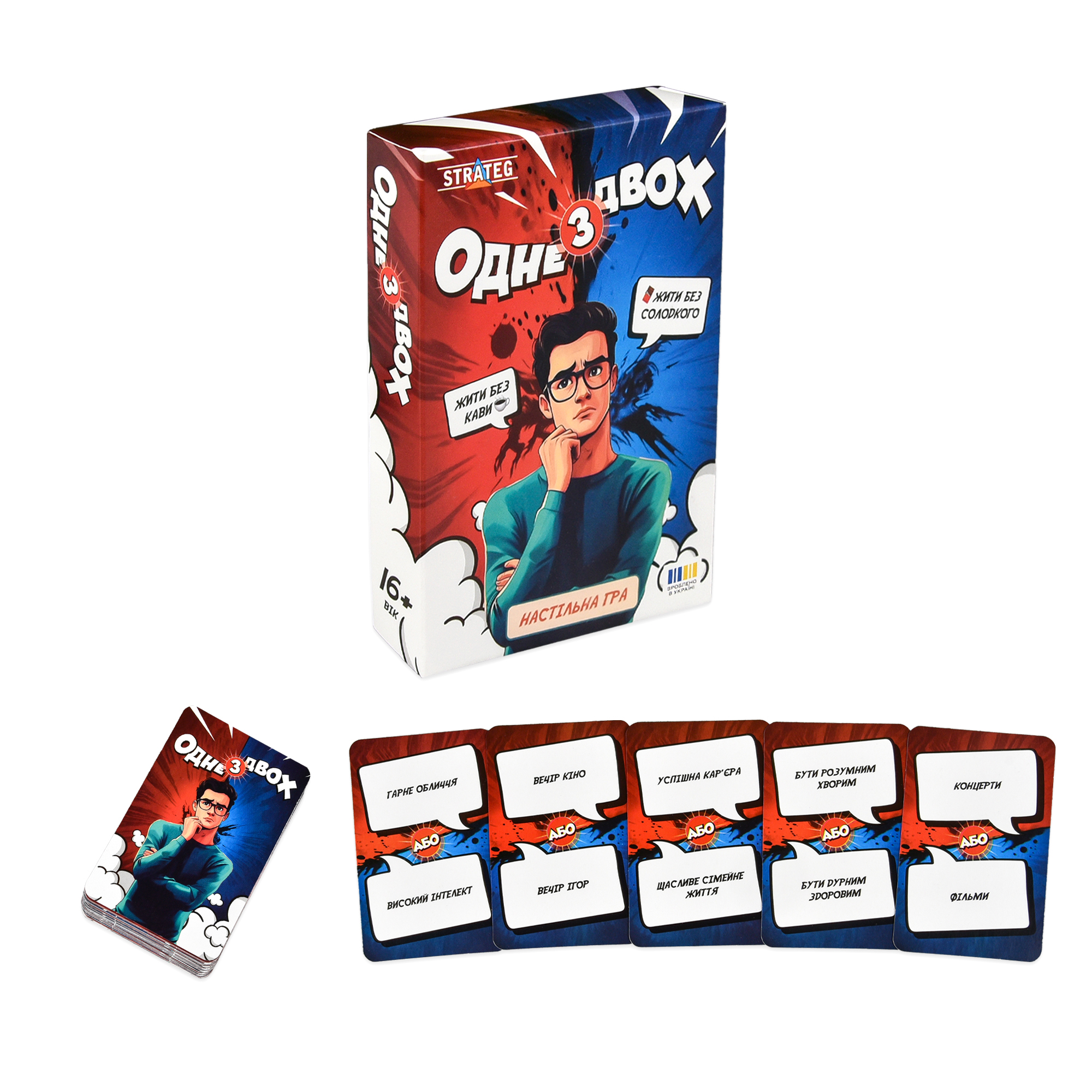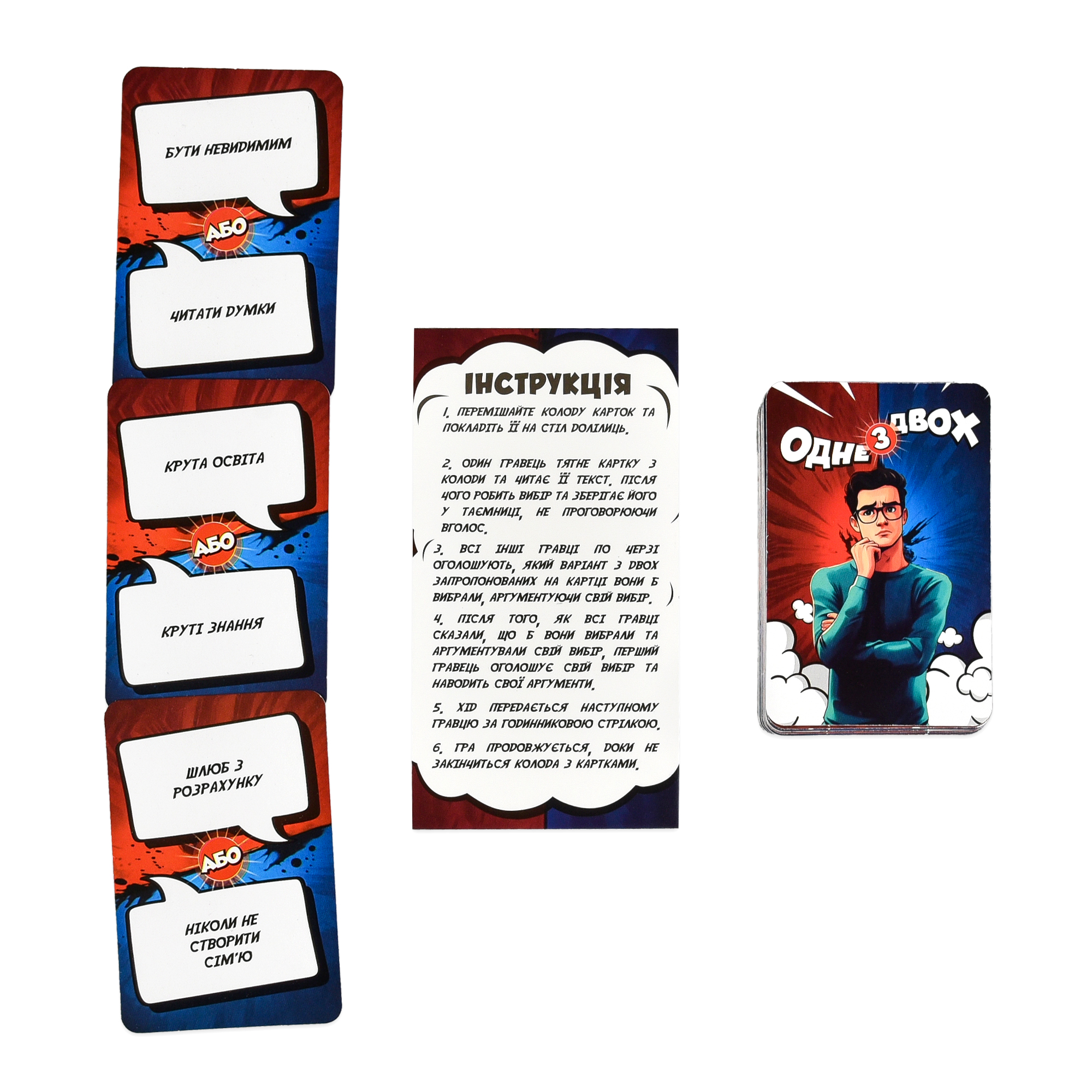 «Одно из двух» — настольная игра для компании, чтобы весело провести время и лучше узнать друг друга. На карточках — два варианта, выбрать можно только один.