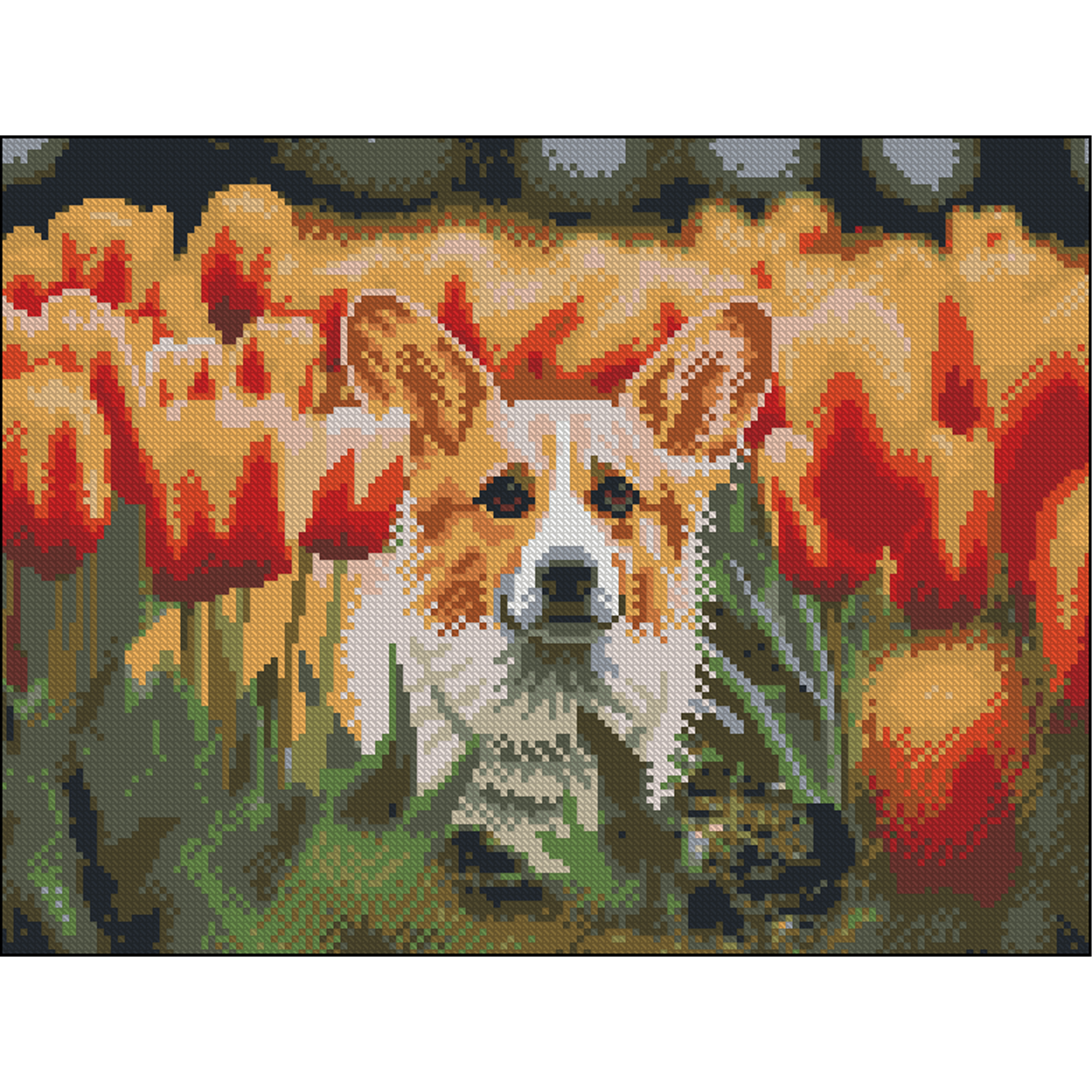 Алмазна картина Strateg Коргі в тюльпанах 30х40 (FZ3040-31)