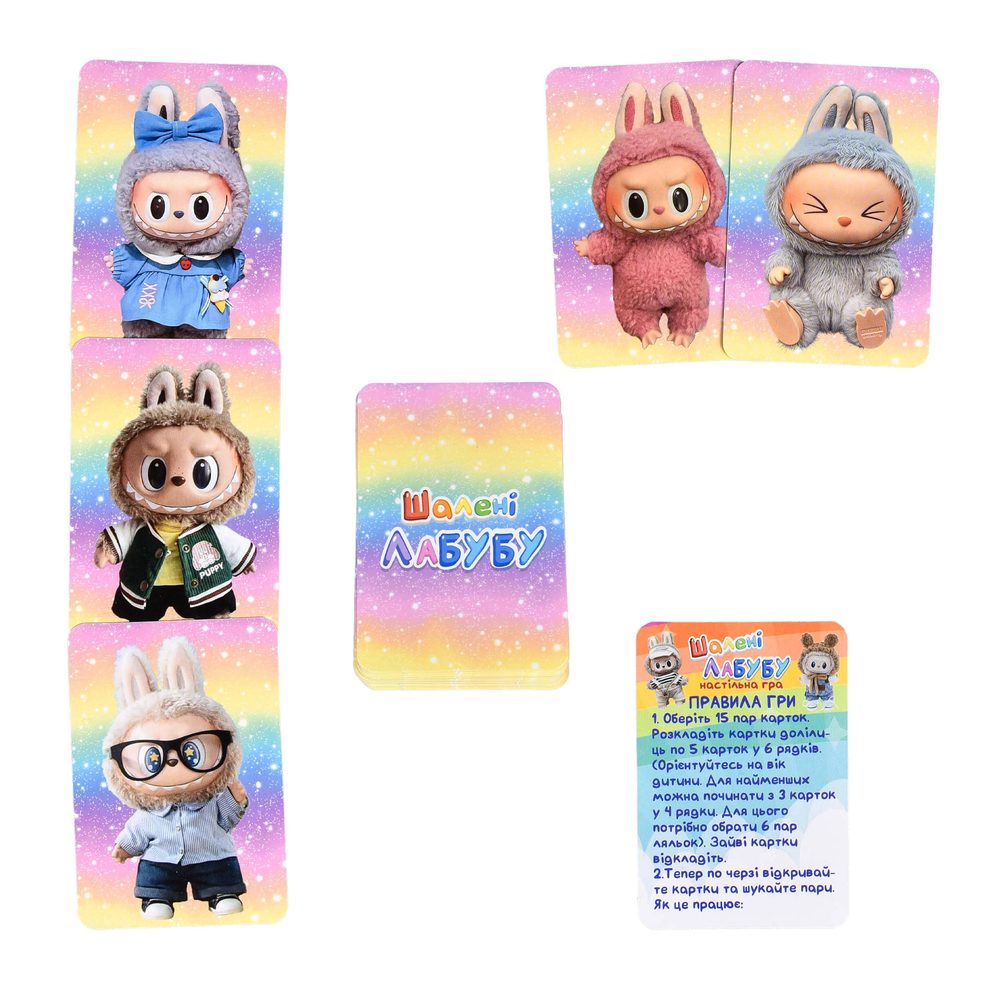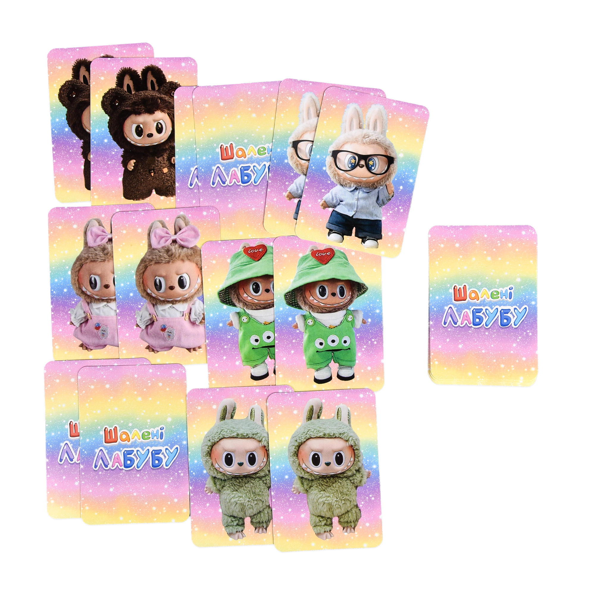 «Шалені Лабубу» — карткова гра з яскравими персонажами. Завдання гравців — знаходити пари карток.