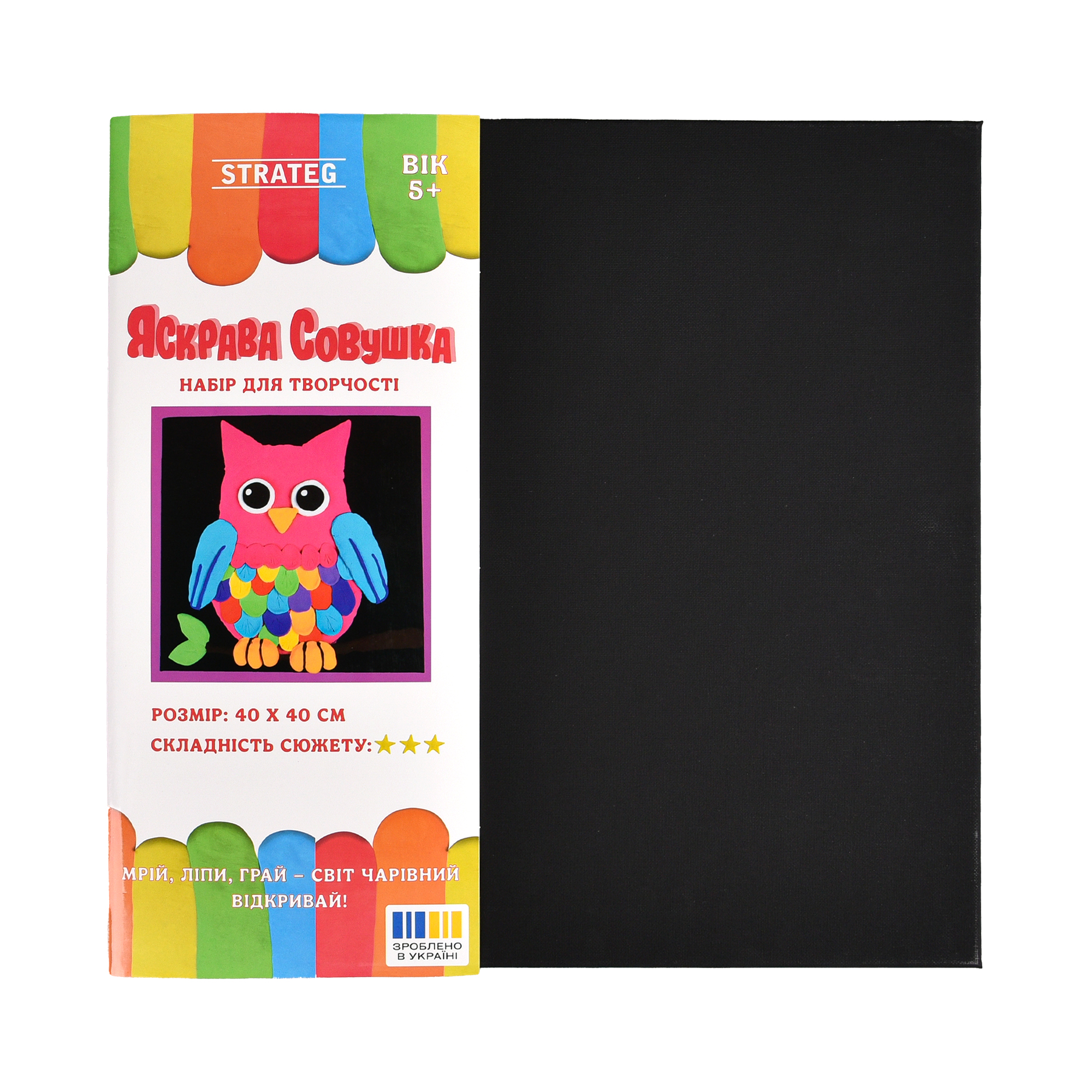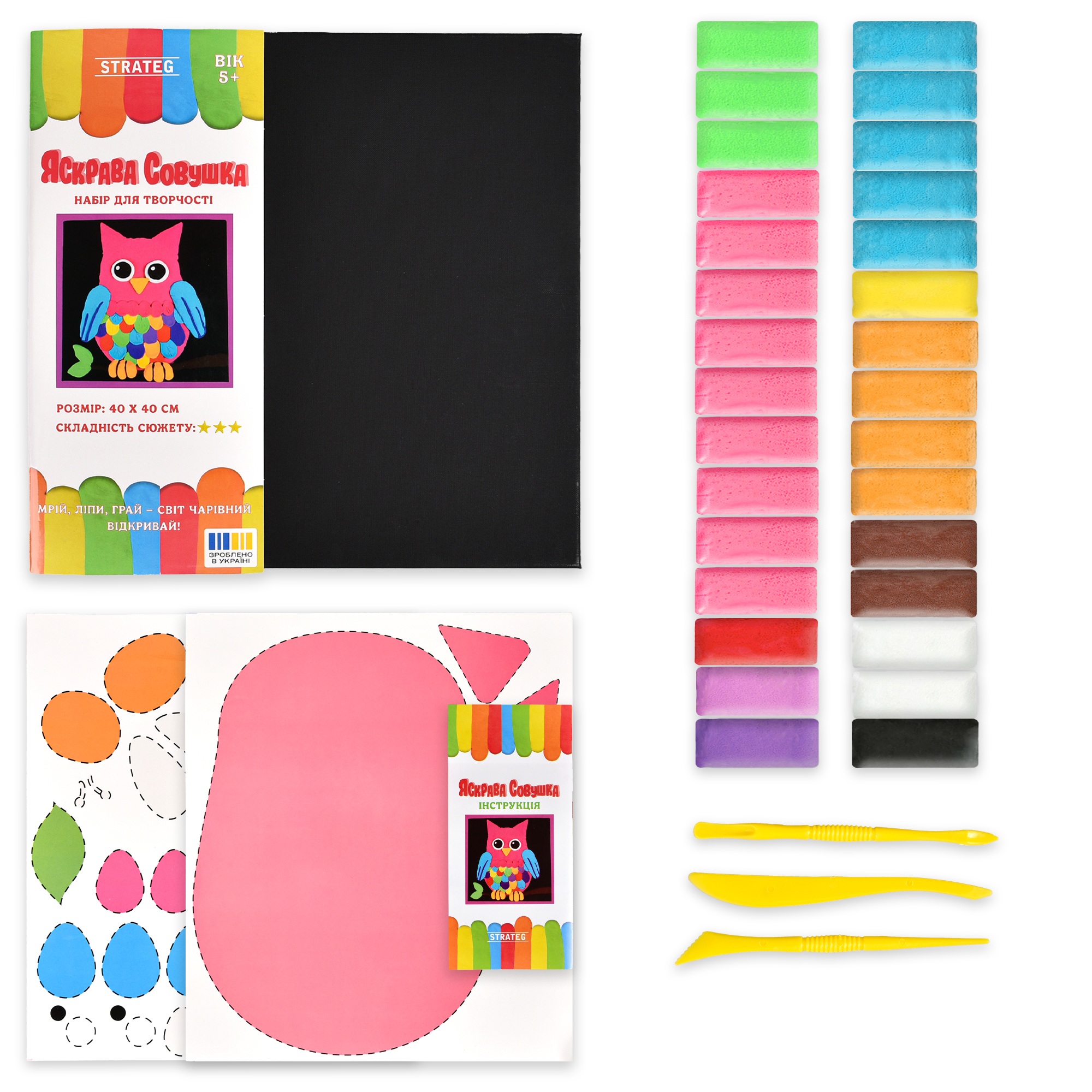 Набір для творчості «Яскрава совушка» допоможе дитині крок за кроком створити барвисту картину з повітряного пластиліну. Основою композиції є чорне полотно, на якому поступово з’являється яскраве зображення. До набору також входить трафарет на окремому картоні, що допомагає легко відтворити сюжет майбутньої картини. Працюючи з повітряним пластиліном, дитина може комбінувати кольори, формувати об’ємні елементи та оживляти картину власною фантазією. Такий творчий процес розвиває уяву, дрібну моторику, уважність і посидючість. У наборі є все необхідне для творчості: полотно, повітряний пластилін різних кольорів, інструменти для ліплення, трафарет та інструкція.